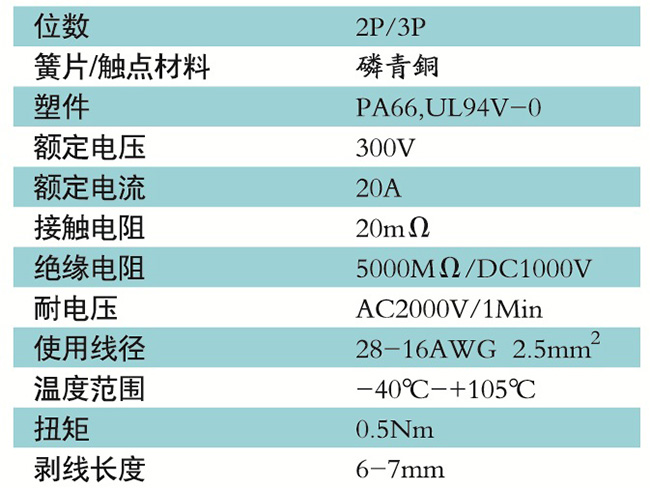 接線端子的絕緣材料用改性的尼龍(PA66),能達到或超過IEC947-7-1EN60947-7-1標準,阻燃等級達到UL94V-0具有良好的電氣性能和機械性能。螺絲用高強度的鋼制成鍍鋅或鎳處理,導電體四方針用合金銅制成表面鍍錫,壓片采用彈性及極強的磷青銅表面鍍錫或鎳;壓線框用抗應力裂縫腐蝕的合金銅制成,這些金屬表面還鍍錫或鍍鎳加以保護。設計完全符合IEC60947-7-1.GB14048.7等標準。
