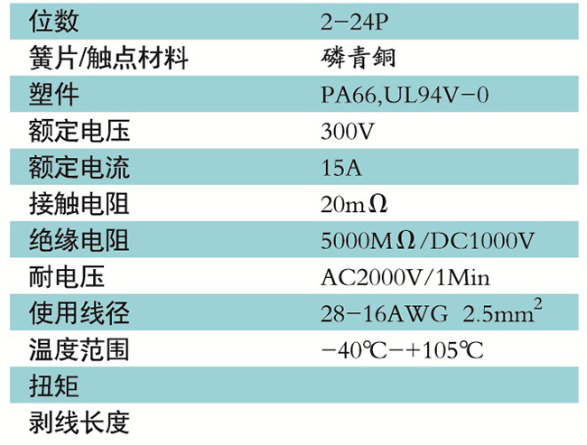 接線端子的絕緣材料用改性的尼龍(PA66),能達到或超過IEC947-7-1及EN60947-7-1標準,阻燃等級達到UL94,V-0具有良好的電氣性能和機械性能。螺絲用高強度的鋼制成鍍鋅或鎳處理,導電體四方針用合金銅制成表面鍍錫,壓片采用彈性及極強的磷青銅表面鍍錫或鎳;壓線框用抗應力裂縫腐蝕的合金銅制成,這些金屬表面還鍍錫或鍍鎳加以保護。設計完全符合IEC60947-7-1.GB14048.7等標準。